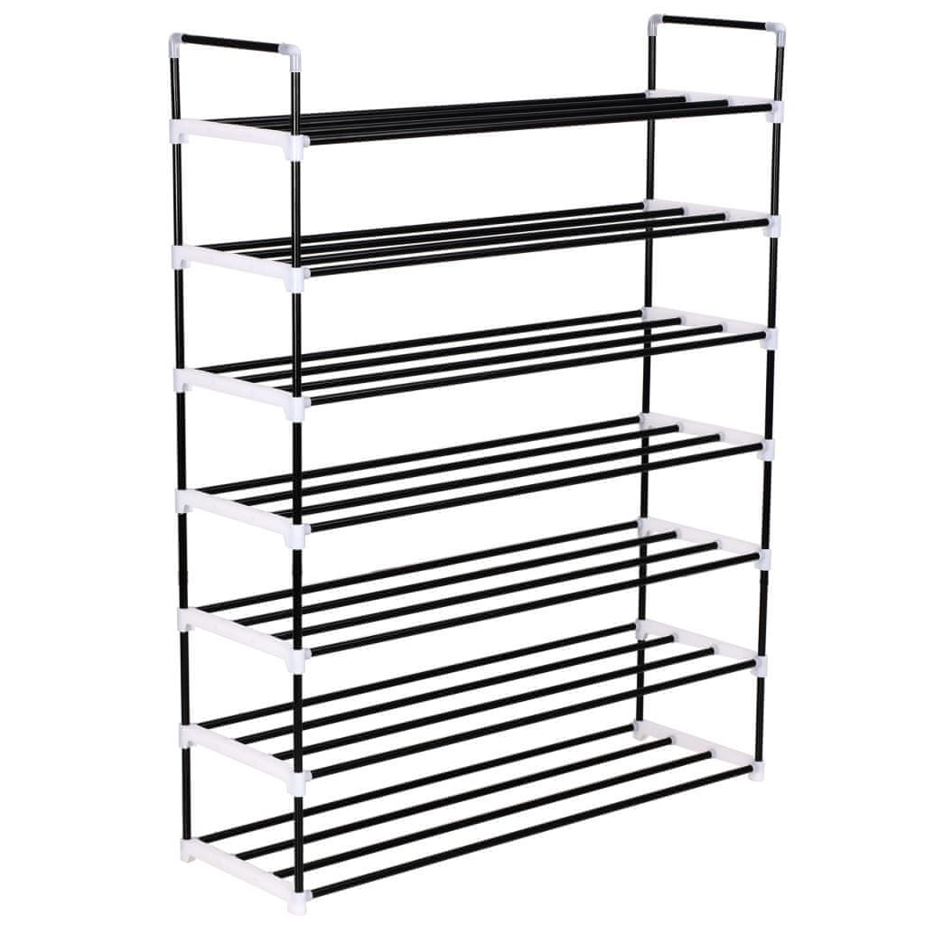 Vidaxl Stojalo za čevlje s 7 policami iz kovine in plastike črne barve
