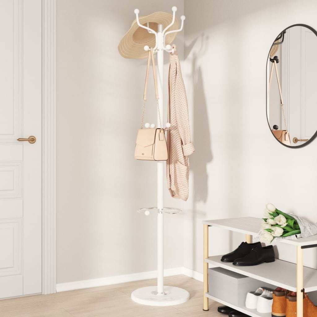 Vidaxl Stojalo za plašče in dežnike belo 180 cm železo s premazom