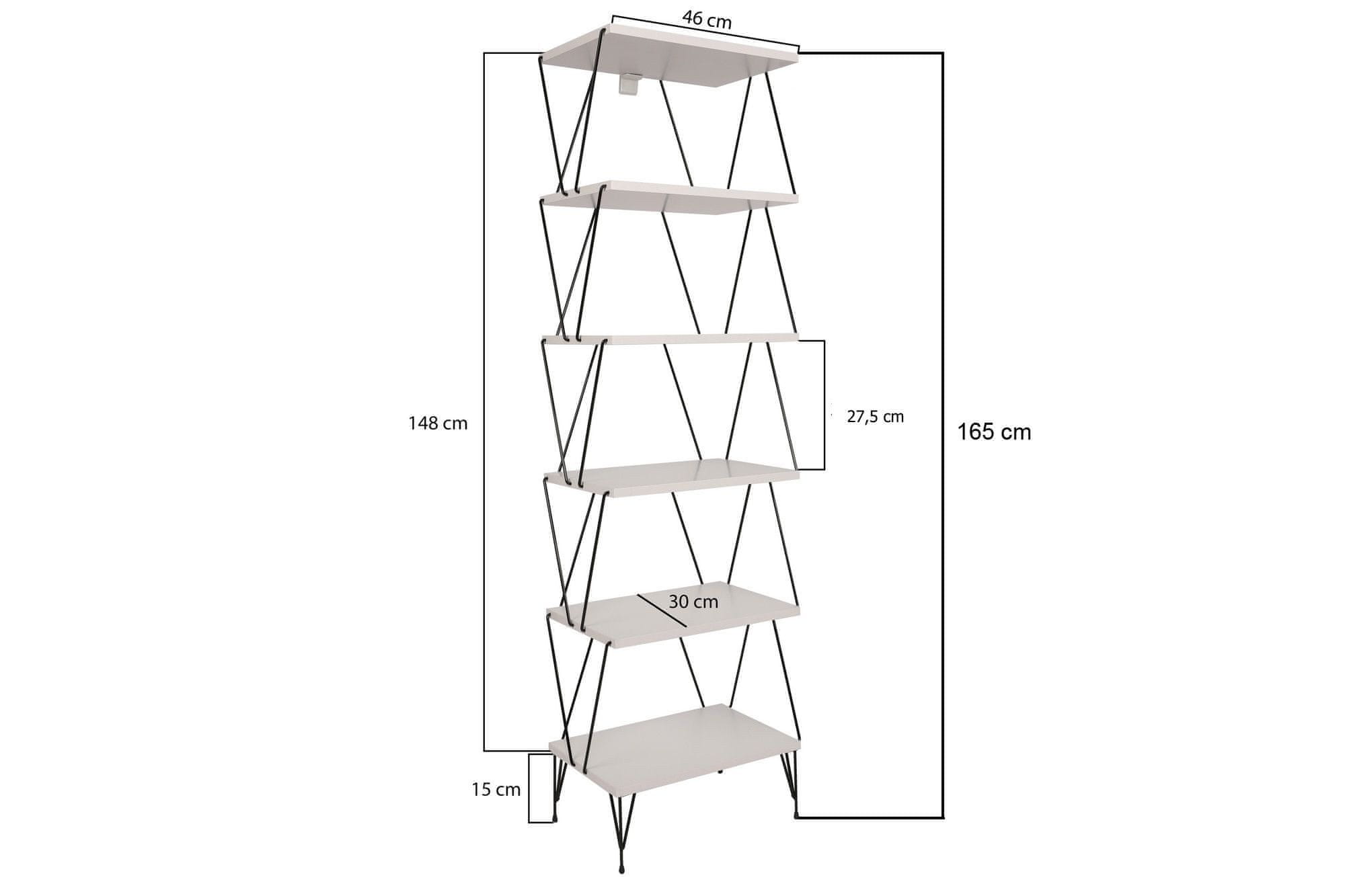 100 % MELAMINSKO PREVLEČENA IVERNA PLOŠČA Debelina: 18 mm Širina: 48 cm Višina: 165 cm Globina: 31 cm Višina police: 27,5 cm Višina nog: 15 cm Številne police Možnost pritrditve na steno Število paketov: 1