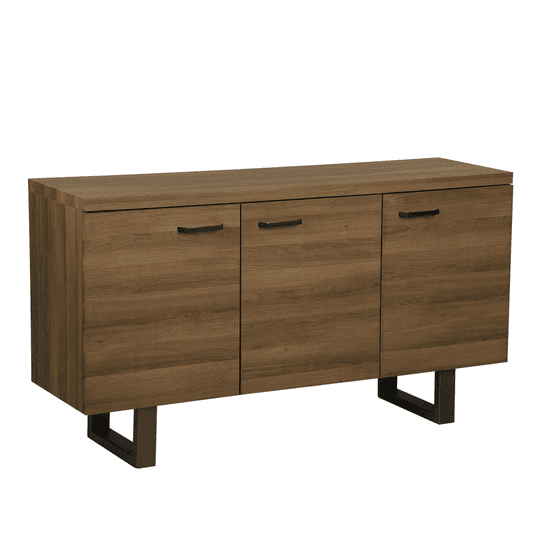 Praktična komoda, ki bo obogatila vsako minimalistično in industrijsko notranjost. Izdelan je iz visokokakovostnega MDF s premazom, ki posnema naravni les. V notranjosti je šest prostornih polic, na katere lahko brez težav namestite različne vrste dodatkov, knjig ali oblačil. Komoda stoji na sivem kovinskem podstavku, ki zagotavlja stabilnost in celotni strukturi dodaja lahkotnost.