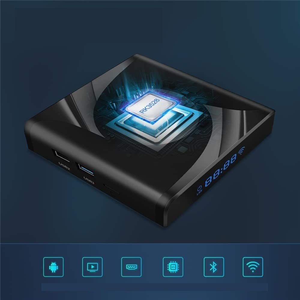 - Najnovejši 13.0 OS + nabor čipov RK3528: X88 PRO 13 android 13 tv box je opremljen s hitrimi štirijedrnimi nabori čipov RK3528 in strojno opremo do 8K, zaradi česar je združljiv z več aplikacijami in storitvami ter ima tudi večjo sposobnost varovanja podatkov. Z visoko zmogljivostjo in naprednimi funkcijami vaš običajni televizor postane pametni televizor, vaša večnamenska domača zabava.