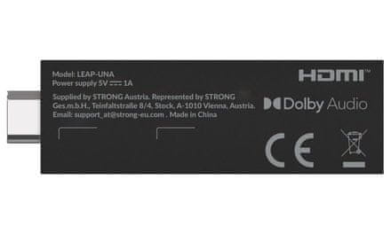 Miniaturni multimedijski predvajalnik s sistemom Android TV 11 podpira ločljivost 2K, kodek HEVC H.265 in format HDR10+ za popolno sliko in bolj realistične barve. Štirijedrni procesor, grafični čip Mali-G31, 1 GB operativnega pomnilnika ali 8 GB velikega notranjega pomnilnika zagotavljajo okretnost celotne naprave. Samo povežite predvajalnik s televizorjem prek priključka HDMI in vse je pripravljeno za uporabo. Za dostop do interneta uporablja brezžično povezavo Wi-Fi (802.11 a/b/g/n/ac), ki jo dopolnjuje Bluetooth 5.0. Prek Android TV lahko enostavno predvajate spletno vsebino iz storitev, kot so Netflix, YouTube, Disney+, Prime Video in druge. Seveda je mogoče namestiti aplikacije iz Google Play. Paket vključuje tudi daljinski upravljalnik z integriranim mikrofonom in podporo za Google Assistant.