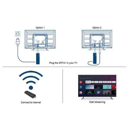 Miniaturni večpredstavnostni predvajalnik z Google TV (Android 11) podpira ločljivost 4K Ultra HD, HEVC Kodek H.265 in format HDR10+ za popolno sliko in bolj realistične barveŠtirijedrni procesor, grafični čip Mali-G31, 2 GB operativnega pomnilnika ali 8 GB velikega notranjega pomnilnika zagotavljajo hitrost celotne naprave. Samo povežite predvajalnik s televizorjem prek priključka HDMI in vse je pripravljeno za uporabo. Za dostop do interneta uporablja brezžično povezavo Wi-Fi (802.11 a/b/g/n/ac), ki jo dopolnjuje Bluetooth 5.0. Prek Google TV lahko preprosto predvajate spletne vsebine storitev, kot so Netflix, YouTube, Disney+, Prime Video, O2 TV in druge. Seveda je mogoče namestiti aplikacije iz Google Play. Vgrajena tehnologija Chromecast vam omogoča priročno pretakanje vsebin iz pametnih telefonov in tablic. Paket vključuje tudi daljinski upravljalnik z integriranim mikrofonom in podporo za Google Assistant.