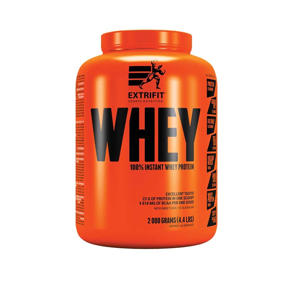 100 % sirotkine beljakovine Extrifit so visoko prebavljive čiste sirotkine beljakovine po ugodni ceni. Te beljakovine so popolnoma instantne, se hitro raztopijo in so izjemno enostavne za pripravo. Končni napitek ima zelo prijetno konsistenco. Zaradi vrhunskega vira beljakovin beljakovine 100% Whey Protein prispevajo k rasti mišične mase in njenemu ohranjanju v primerih, ko jo ogroža katabolizem. V vsakem odmerku lahko uživate polnih 23 g beljakovin najvišje kakovosti. Glavna beljakovinska sestavina prihaja iz preverjenega evropskega vira. Ključne prednosti: