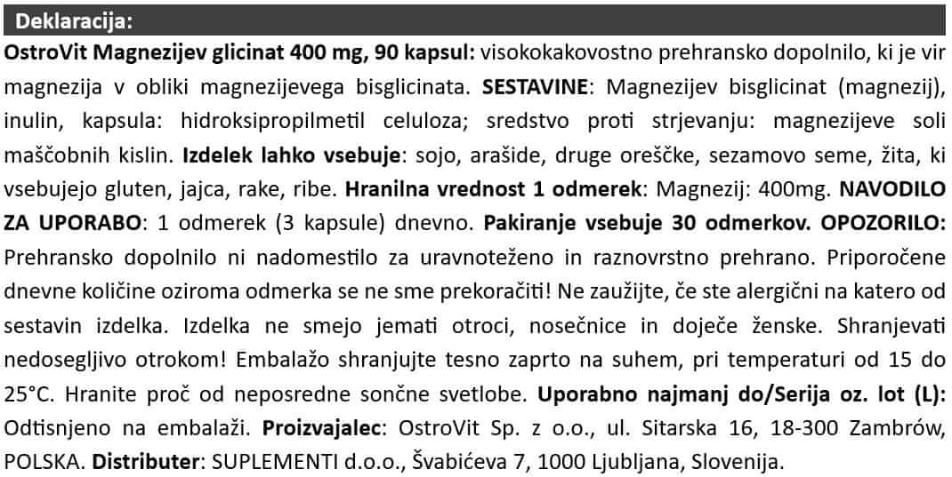 OstroVit magnezijev glicinat 90 kapsul: učinkovita podpora živčnemu sistemu in mišicam.