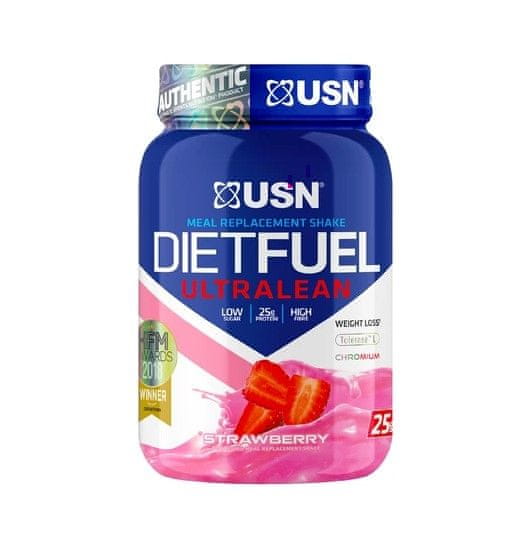 USN Diet Fuel Ultralean je vrhunska mešanica napitkov z visoko vsebnostjo beljakovin in vlaknin. Ta hranljivi napitek zagotavlja vnos visokokakovostnih vitaminov in mineralov ter se lahko uporablja kot popoln obrok na poti. Tako lahko nadzorujete ravnovesje svoje prehrane. Vsebuje pH stabilno laktazo, ki izboljša prebavljivost mlečnega sladkorja (laktoze) za ljudi s težavami s prebavo laktoze. Vsebnost vitamina D prispeva k ohranjanju normalnega delovanja mišic. Vitamin C pomaga pri delovanju imunskega sistema med intenzivno telesno vadbo in po njej. Magnezij prispeva k normalni sintezi beljakovin in normalnemu delovanju mišic. Riboflavin in vitamin B12 vplivata na zmanjšanje stopnje utrujenosti in izčrpanosti. Vitamin B6 prispeva k normalni presnovi beljakovin in glikogena. Vsebnost biotina podpira normalno presnovo makrohranil, krom pa vzdržuje normalno raven krvnega tlaka. USN Diet Fuel Ultralean je zaradi svoje sestave primeren tudi za vegetarijance. Brez glutena. Priporočeno odmerjanje:
