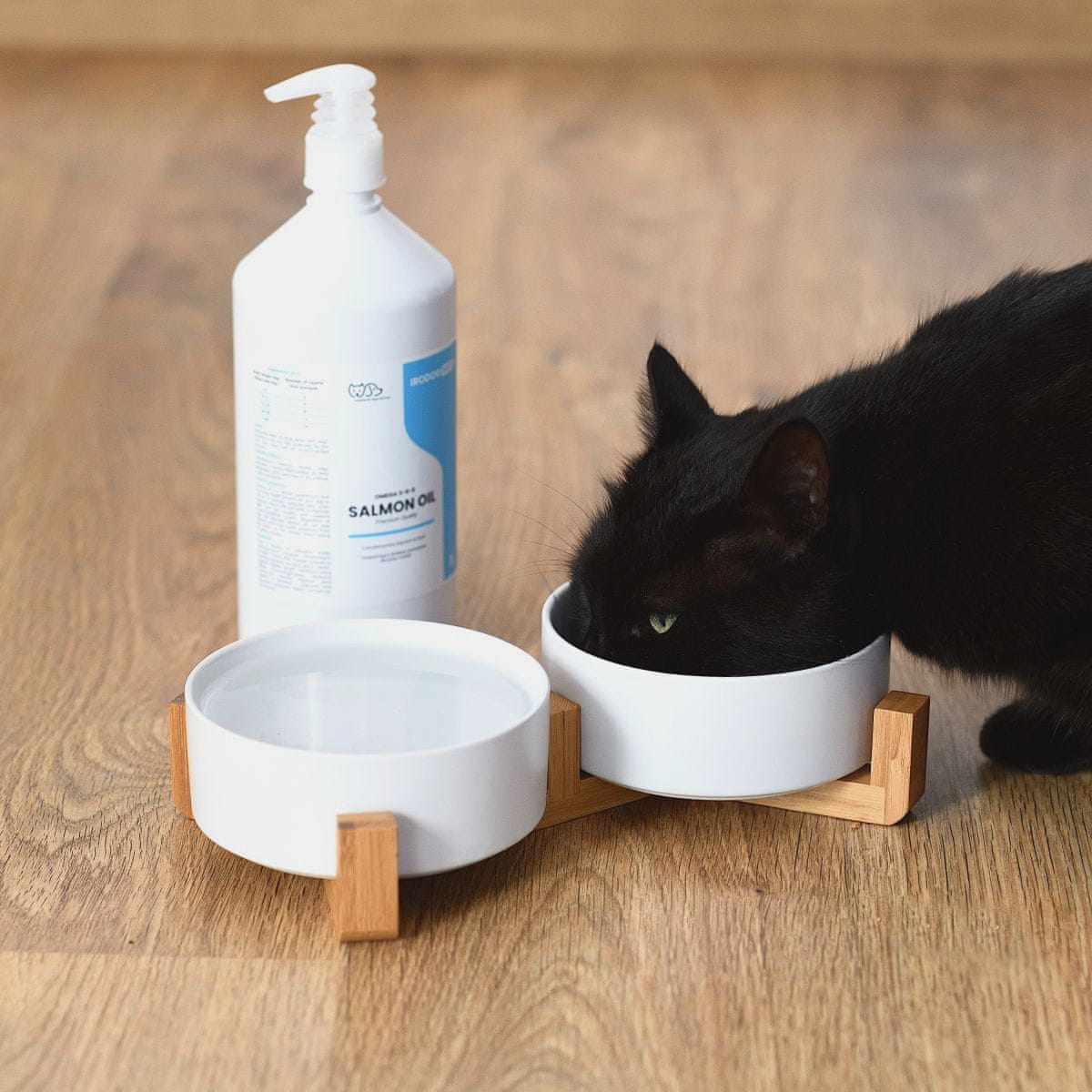 Mastni kislini omega3 in omega6 sta esencialni kislini v prehrani živali, saj ju njihov organizem ne more proizvesti sam. Zato je dobro, da v prehrano svojega ljubljenčka vključite izdelek, ki jih vsebuje. Lososovo olje je odlično dopolnilo tudi za mačke!
