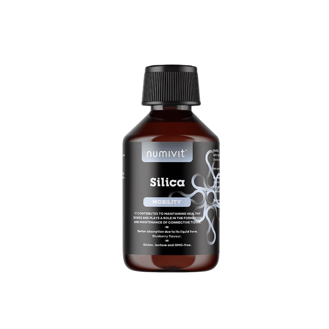 Silicij v tekoči obliki z manganom in bakrom (250 ml) je prehransko dopolnilo, zasnovano za podporo vezivnemu tkivu, kostem in koži. Mangan prispeva k ohranjanju zdravih kosti, k nastajanju vezivnega tkiva ter ima vlogo pri zaščiti celic pred oksidativnim stresom. Baker pa prispeva k ohranjanju normalnega vezivnega tkiva, obarvanosti kože in las ter k delovanju živčnega sistema. Tekoča oblika z nežnim okusom borovnice omogoča enostavno uporabo brez kapsul, formulacija brez glutena, laktoze in GSO pa je primerna tudi za vegane. Z dnevnim vnosom 10 ml zaužijete 196 mg silicija, 2 mg mangana in 1 mg bakra, kar pokrije 100 % priporočenega dnevnega vnosa za slednja dva minerala.