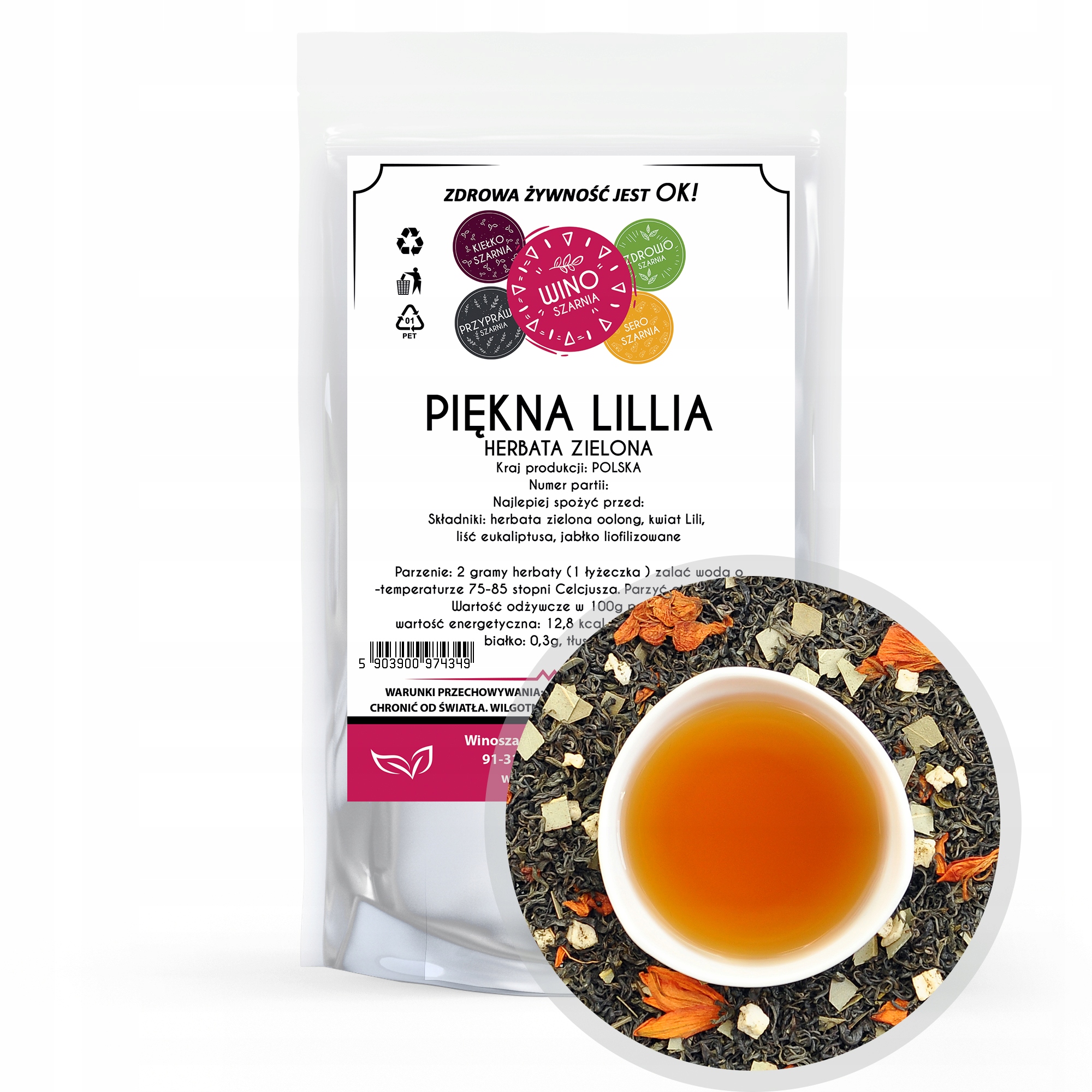 • Sestavine: zeleni čaj oolong, cvet lilije, list evkaliptusa, liofilizirano jabolko