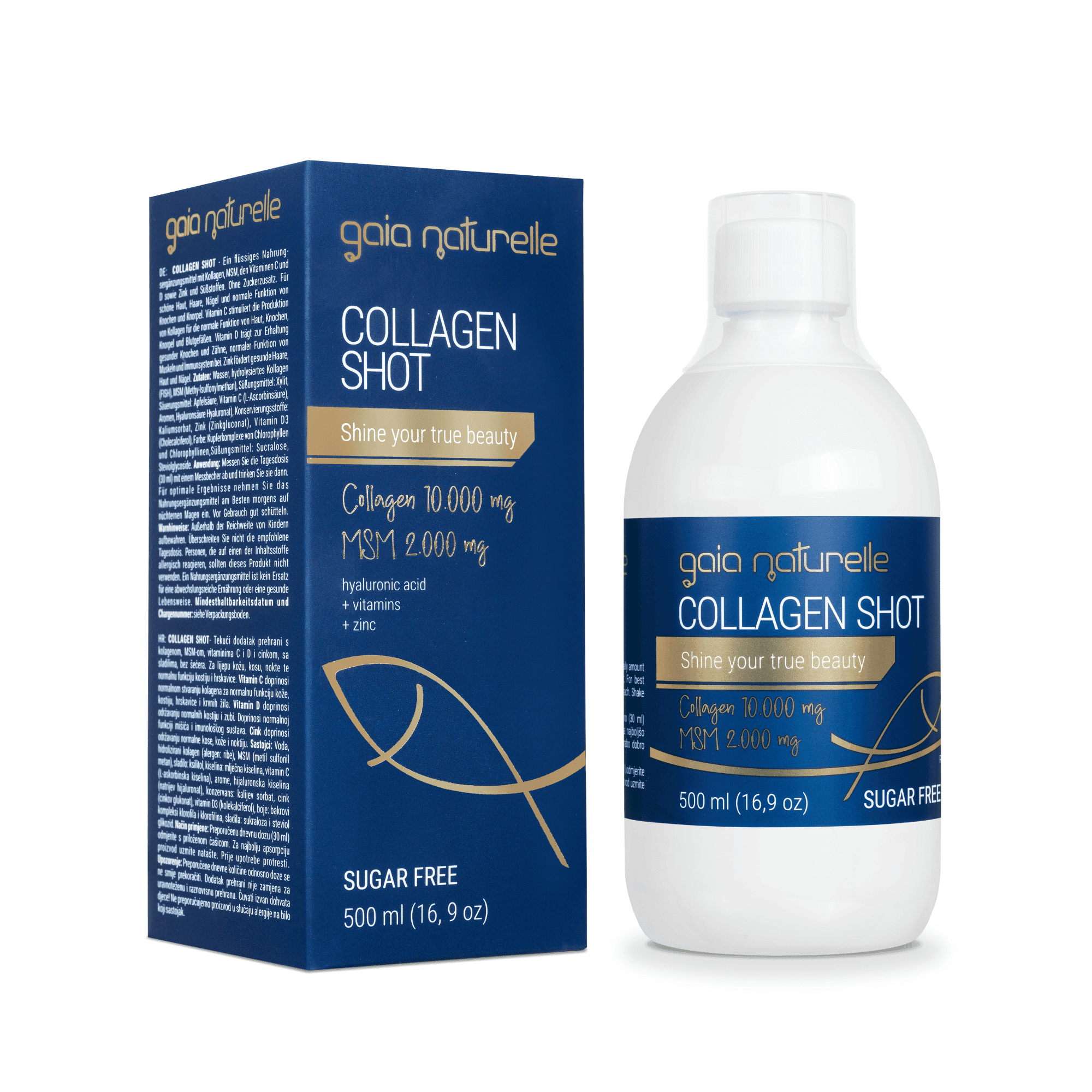Kolagen shot 10.000 je posebej namenjen starejšim ljudem in ljudem s povečanimi potrebami nadomeščanja hranil, saj vsebuje visoko koncentracijo kolagena (10 g) in MSMja (2 g), ki blagodejno vplivata na sklepe. Večje doze priporočamo tudi po operacijah in laserskih posegih na koži.