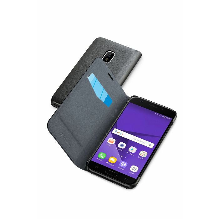 CellularLine BOOKESSGALJ317K je preklopna torbica v črni barvi z žepkom za kreditno kartico iz eko usnja. Nudi odlično zaščito vašega telefona. Za Samsung Galaxy J3 2017.