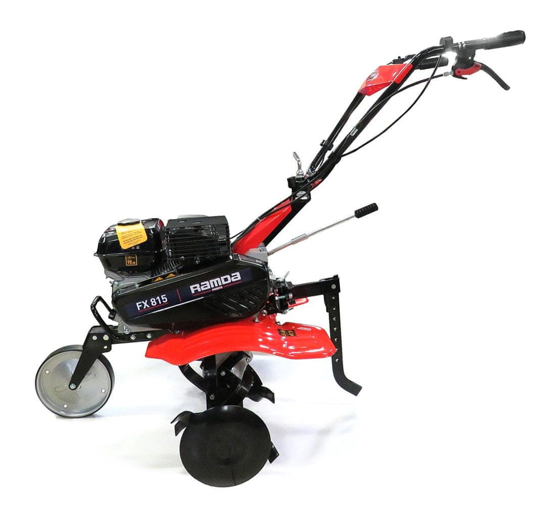 Prekopalnik Ramda FX 815TG se ponaša z gumiranimi kolesi in 4-taktnim motorjem Texas TG725. Nudi dve prestavi naprej in eno vzvratno. Njegova delovna širina meri do 88 cm. Celoten opis