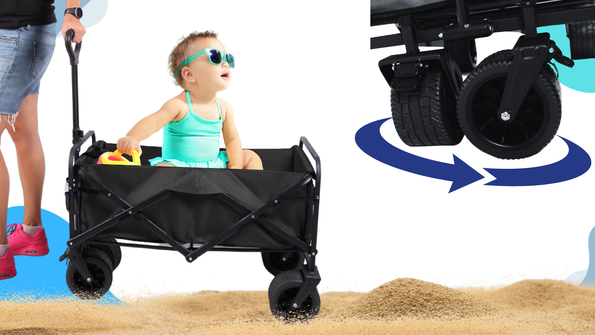 • ✅Žepi na zunanji strani vozička – so idealne za shranjevanje manjših predmetov, kot so dodatki za na plažo ali igrače