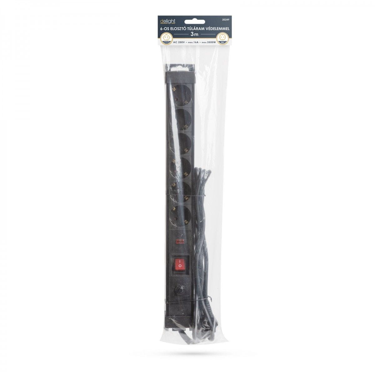Delight Podaljšek 3x1mm z razdelilcem in 6 vtičnicami in prenapetostno zaščito 3m