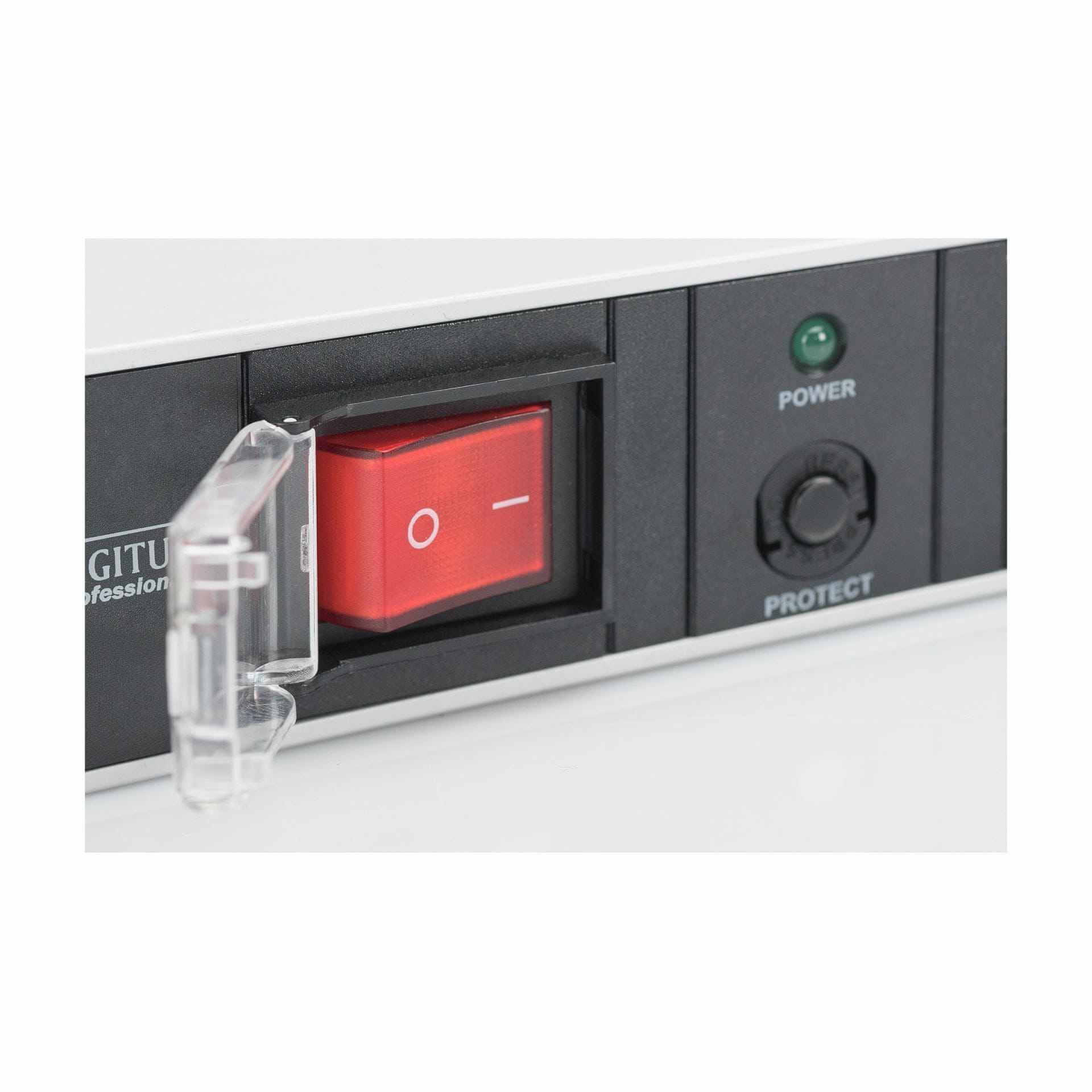 DIGITUS visokokakovostni razdelilec z osvetljenim stikalom in preobremenitveno zaščito za montažo v 48cm (19") kabinet