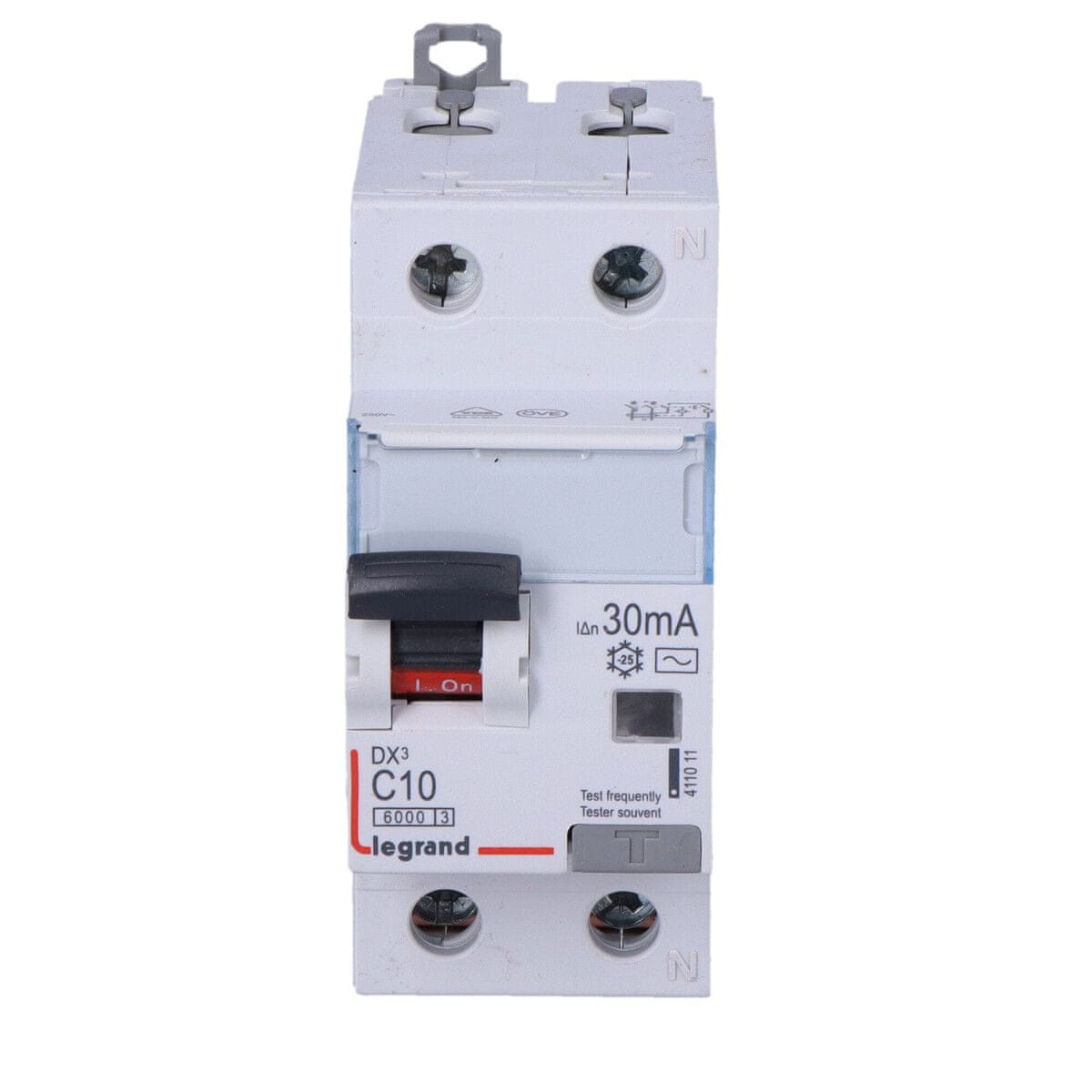 Naprave na preostali tok serije P 310 DX3 Odklopniki P 310 združujejo funkcije naprave na diferencialni tok in odklopnika za prevelik tok, kar zagotavlja tako zaščito pred udarnim tokom kot tudi zaščito pred učinki kratkih stikov in preobremenitev. Združitev dveh funkcij v eni napravi omogoča boljšo izrabo razpoložljivega prostora v stikalni omarici. Vsi odklopniki serije P 310 DX3 so opremljeni s testnim gumbom za preverjanje pravilnega delovanja odklopnika. Naprave serije DX3 so združljive z optimalnim sistemom za distribucijo električne energije HX3 do 125 A, kar omogoča njihovo brezžično povezavo z električno napeljavo. Zaščitne naprave serije DX3 so združljive z vsemi pomožnimi napravami (pomožni in signalni kontakti, podnapetostni in stranski sprožniki, daljinski pogoni in druge). Naprave P 310 serije DX3 so na voljo za nazivne tokove od 6 do 40 A in diferencialne tokove od 10 do 300 mA. Kratkostično izklopna zmogljivost: 6000 A ali 10000 A (IEC/EN 61009–1). Razpoložljive časovno-tokovne karakteristike: B in C. Vrste: AC in A. Izdelano za nazivne tokove od 6 do 40 A. Nazivni diferencialni tokovi: 10 mA, 30 mA in 300 mA. Izvedbe: •dvopolna (P 312 DX3), •štiripolna (P 314 DX3). Diferencialna odklopnika serije P310 z zaščito pred prevelikim tokom, enofazna P312, karakteristika C, tip AC Nazivna napetost: V~ Montaža: letev TH35 Nazivni tok: 10 A Število polov: 2 Širina v modulih 17,5 mm: 2 Nazivni diferencialni tok: 30 mA Tip Značilnosti: C Zasnova: AC Odpornost na prenapetostni tok (8/20): 250 A