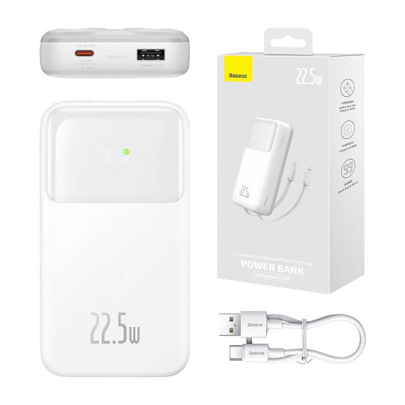 BASEUS powerbank comet 20000mah, usb na usb-c, 22,5 W (bela)