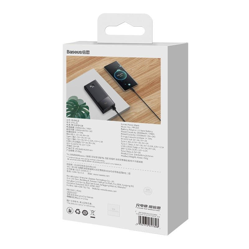 Powerbank Baseus Star-Lord je opremljen z zaslonom LED, zaradi katerega boste imeli enostaven dostop do informacij o stopnji napolnjenosti vaše naprave. Pametna tehnologija polnjenja (BPSII) omogoča dinamično porazdelitev energije med polnjene naprave ter samodejno prilagajanje izhodne moči in napetosti. Pametni čip med drugim zagotavlja večstopenjsko zaščito pred pregrevanjem, prenapetostjo, kratkim stikom, nadtokom in elektromagnetnimi polji. Varno polnite do 3 naprave hkrati!