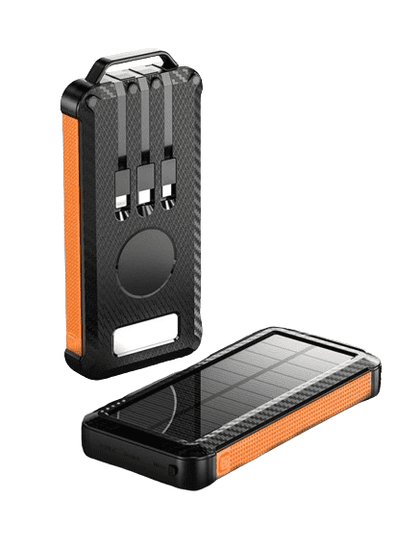 Solarna powerbank je sestavljena iz litij polimerne baterije s skupno velikostjo 10.000 mAh. S pomočjo 4 LED diod lahko spremljate preostalo zmogljivost solarne powerbank. Zaradi dveh vhodov USB lahko hkrati priključite dve napravi. Ta izdelek je primeren tudi, ko ste na poti, saj je opremljen z vodoodporno zaščito IP67. Poleg tega je na spodnji strani nameščena žarometna svetilka.