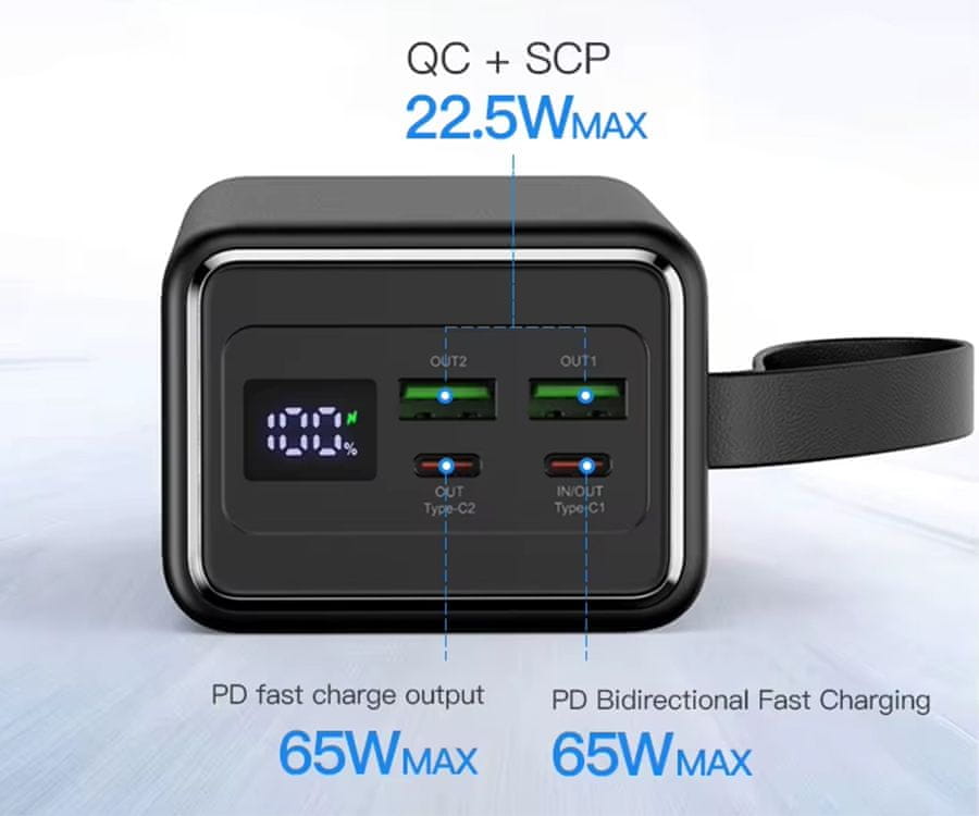 Predstavljamo polnilno baterijo Platinet PMPB4065 s kapaciteto 40.000 mAh, ki ima napredne tehnologije Quick Charge 3.0 in Power Delivery, ter nudi izjemno moč 65 W za polnjenje vseh vaših naprav na poti.