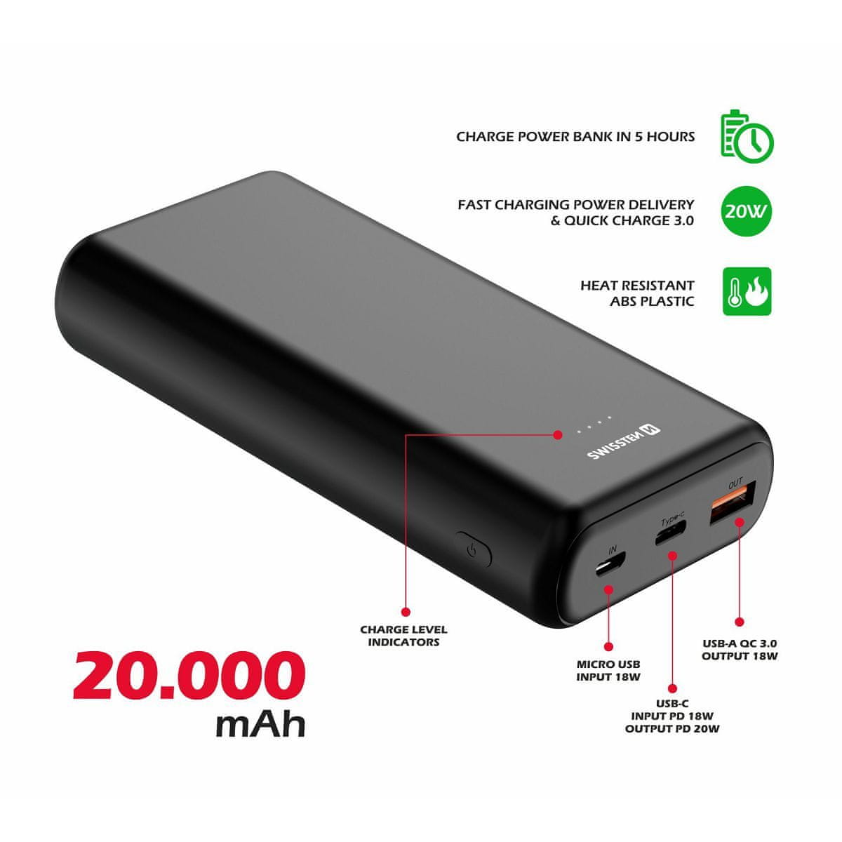 SWISSTEN POWER LINE 20.000 mAh 20W PD prenosna baterija