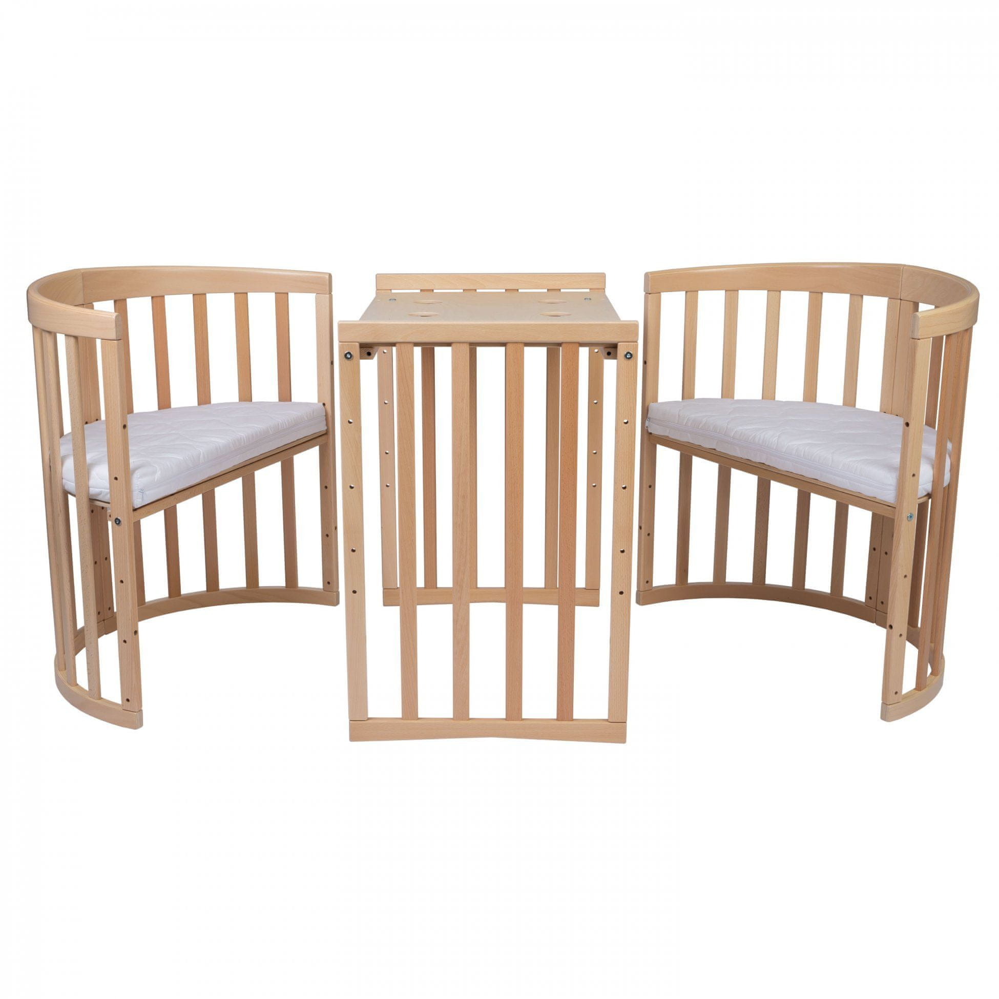 Pohištvo se lahko uporablja tudi kot majhna otroška posteljica. Najpomembnejši prednosti te konfiguracije so kompaktne dimenzije in mobilnost. Leseni elementi bodo ustvarili funkcionalno previjalno mizo z dodatno poličko, ki bo olajšala vsakodnevno nego dojenčka in menjavanje plenic.