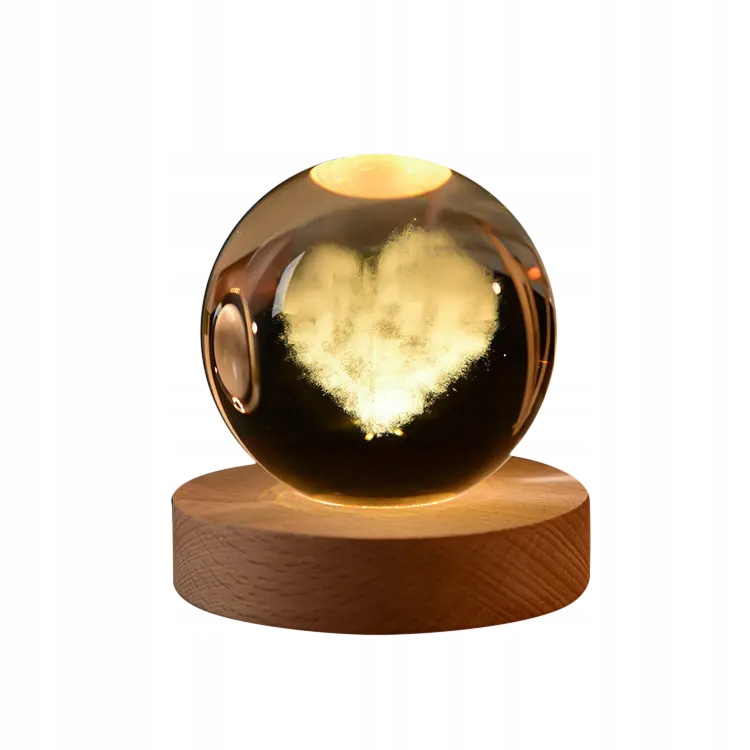 shumee 3D NOČNA LUČKA STEKLENA KROGLA 6 cm USB napajanje za otroško spalnico SRCE