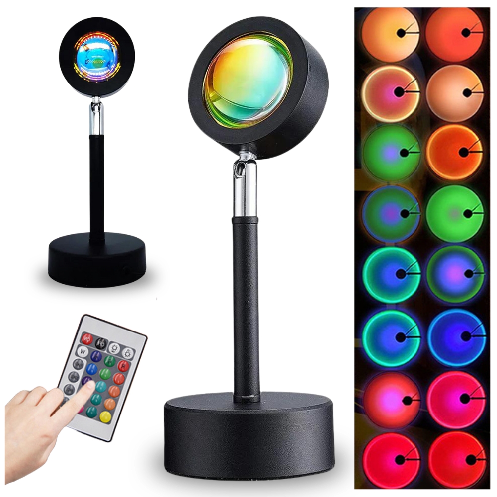 ☀️ VSE, KAR JE NAJPOMEMBNEJŠE PRI SVETILKI SONČNI ZAHOD: ⭐ 16 RGB barv – široka izbira barv za popolno vzdušje ⭐ 4 načini osvetlitve