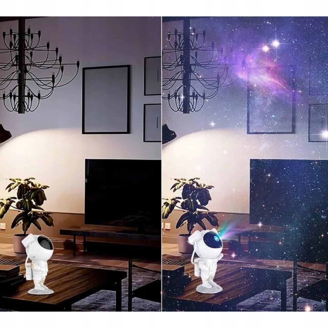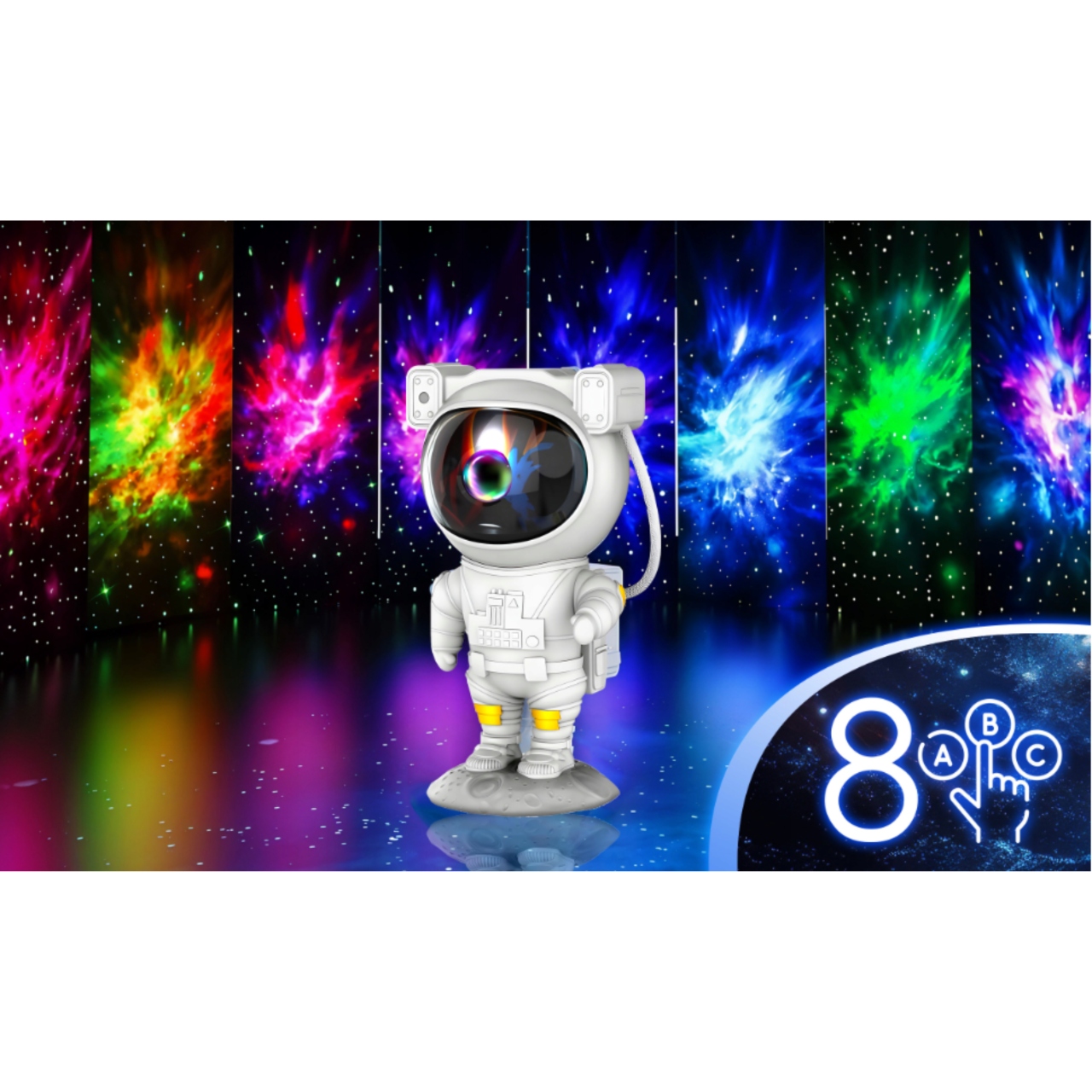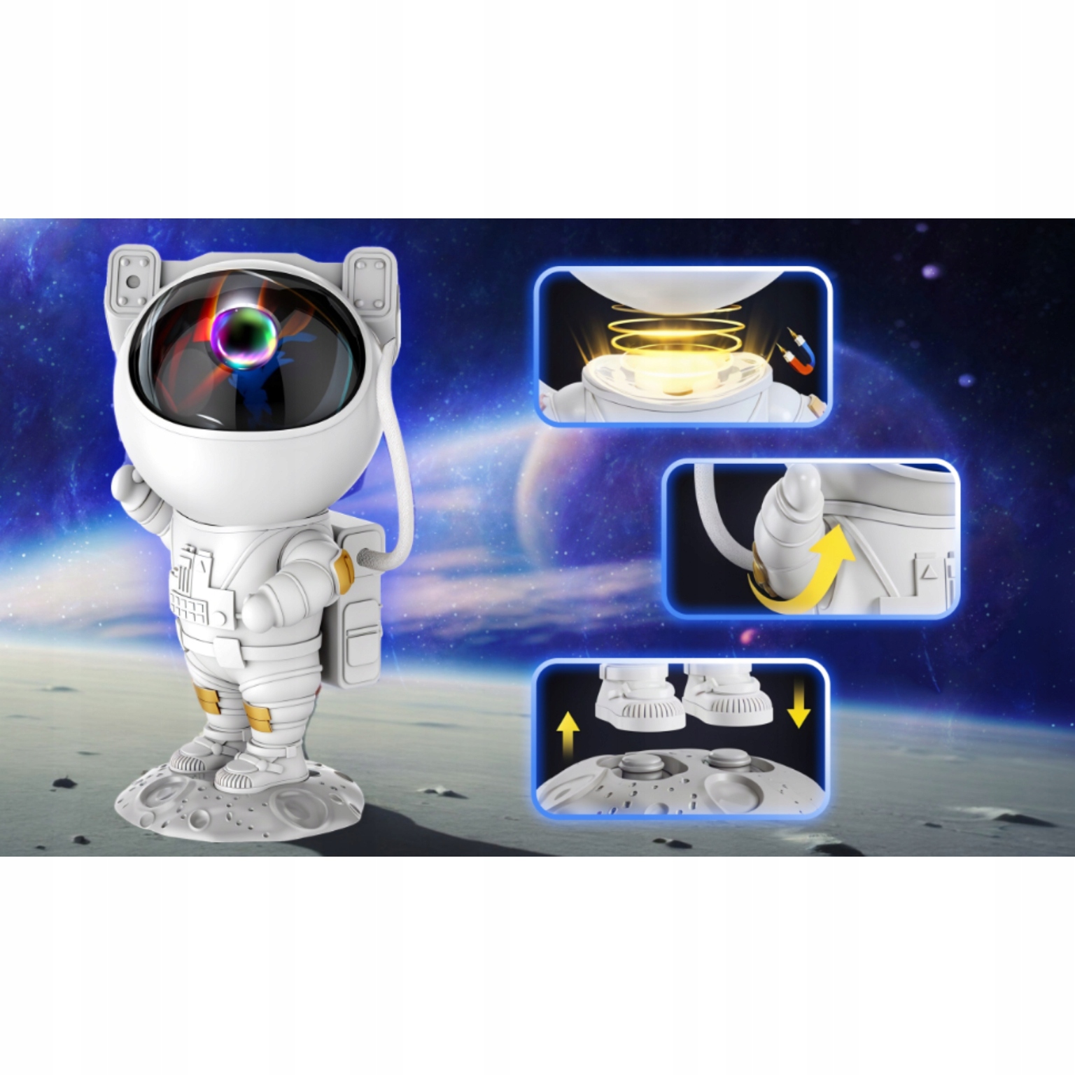 - Dobrodošli v deželi sanj, kjer se vsak zaspan spremeni v potovanje v neznano, vaša soba pa v kozmično galaksijo, polno skrivnosti! Naš inovativni zvezdni projektor „Astronavt“ ne le spremeni vesolja v osupljivo zvezdnato nebo, temveč tudi zaspanje spremeni v čaroben trenutek, poln miru. Zahvaljujoč različnim svetlobnim učinkom, 8 načinom projekcije in uporabniku prijazni zasnovi je vsak večer s tem projektorjem edinstveno potovanje v galaksijo!