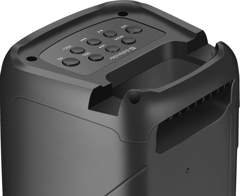 Prenosni zvočnik Defender ima vgrajen aktivni vmesnik Bluetooth 5.0, ki skrbi za brezžično komunikacijo zvočnika z mobilnimi napravami kot so pametni telefon, telefon, tablica, računalnik, TV.