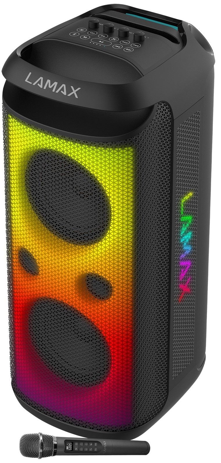 Spoznajte kralja, ki prihaja. Vlada vsaki zabavi, praznovanju, poroki, ne razočara pa tudi kot partner za vadbo, gledanje filmov ali sprostitev ob poslušanju. LAMAX PartyKing1 Max daje največ z močjo do 200 W, a zahvaljujoč funkciji True Wireless Stereo lahko gre še dlje. Vendar opozorite sosede, da bo ta akcija zagotovo slišana. Če seznama predvajanja nimate pri roki, lahko preprosto nastavite FM radio na zvočnik. Dvosmerni zvočniki predvajajo uspešnice v najboljši kakovosti zvoka, ki podpira tudi podrobne vhodne nastavitve s BeatBass tehnologijo. Ne le, da vas bo spravil v ples, ampak tudi 8 odličnih LED učinkov za fino uravnavanje vzdušja. Ne glede na to, ali gostite dogodek ali imate svoj koncert, vam bosta brezžični mikrofon in način za karaoke prišla prav. Z možnostjo snemanja lahko preprosto ovekovečite svoje nastope. Zvočnik podpira različne formate in povezave, za povezavo pa boste verjetno najpogosteje uporabljali Bluetooth 5.3, preko katerega se bo avtomatsko seznanjanje dogajalo ne samo z mobilnim telefonom. Upravljanje zvočnika je preprosto, intuitivno in zahvaljujoč daljincu tudi priročno. Pripravite se, ta zabava bo zelo dolga, zvočnik zdrži do 15 ur z enim polnjenjem.