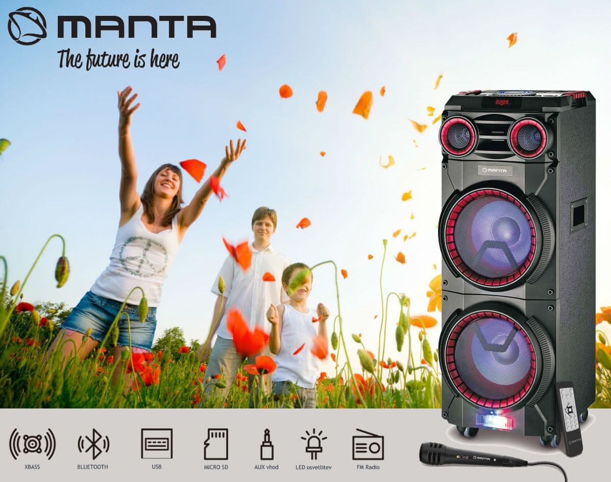 Akustični avdio sistem MANTA SPK6011 bo poskrbel za odlično zabavo in razpoloženje, tako znotraj ali na prostem. Omogoča povezavo preko različnih priključkov, tudi Bluetooth in priklop žičnih ali brezžičnih mikrofonov. Celoten opis