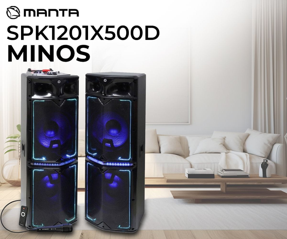 Manta SPK1201X500D MINOS z izjemno močjo je pravi multimedijski center, saj ima vgrajen Bluetooth 5.0, kar zagotavlja svobodo gibanja in udobje uporabe. Glasbo lahko predvajate iz pametnih naprav ali USB naprav, na kontrolni plošči pa se nahaja tudi vhod SD za spominske kartice in 2× MIC-in vhod za priklop mikrofona.