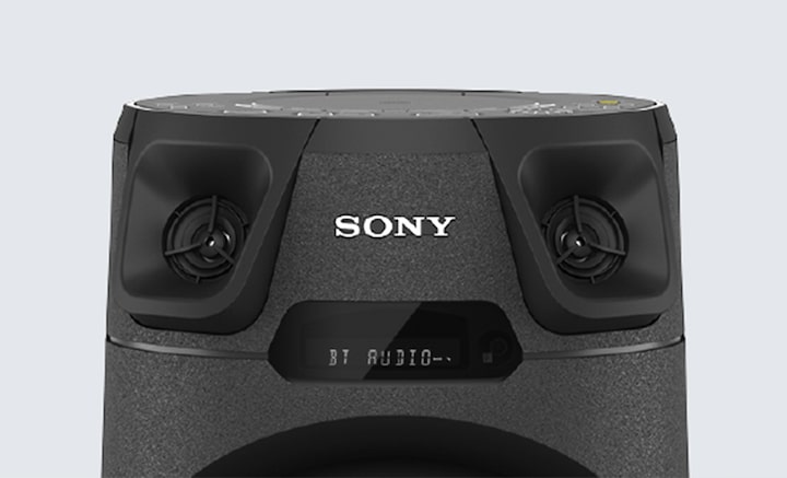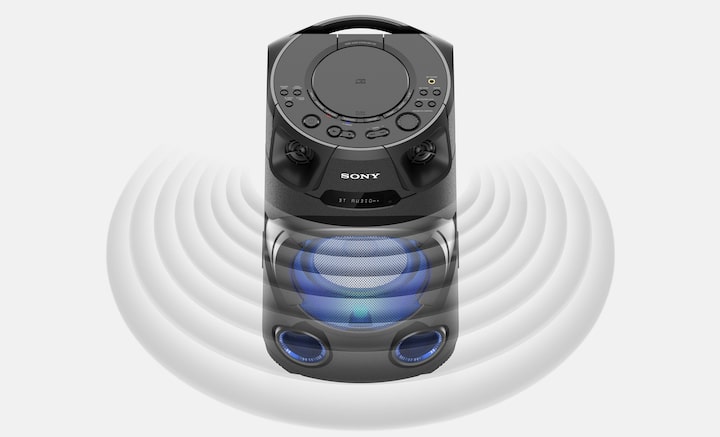 Majhen in kompakten MHC-V13 se ponaša z mogočnim zvokom. Visokoučinkovita visokotonca in JET BASS BOOSTER razpršijo zvok po prostoru za zabavo, tako da glasba od sprednjega dela enote seže širše in višje ter lahko vsi gosti uživajo v bogatem in čistem zvoku.