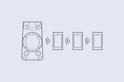 S prijatelji lahko z zvočnim sistemom MHC-V13 prek tehnologije Bluetooth® istočasno seznanite do tri pametne telefone. Izbor skladb bo še večji, saj jih boste lahko predvajali iz vseh glasbenih knjižnic.
