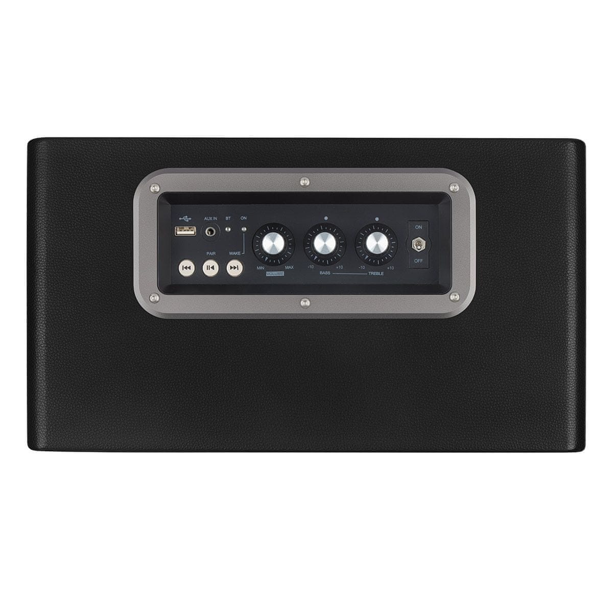 Celoten zvočnik je prevlečen z odporni usnjem, zato je na pogled eleganten in praktičen za uporabo. Štiri noge, ki ne drsijo zagotavljajo dovolj prostora za za izhode nizkih tonov na spodnji strani zvočnika.