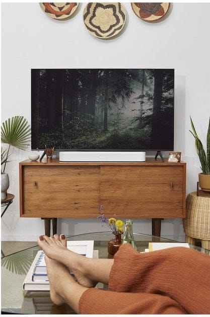 Njen predhodnik je uspešna zvočna naprava Sonos Beam 1. generacije, vendar ga novi model druge generacije prekaša s hitrejšim in zmogljivejšim procesorjem ter osupljivim zvokom. Ko minimalistično zvočno vrstico Sonos Beam 2 prek HDMI eARC povežete s televizorjem, se boste počutili kot v pravem kinu. Podpora Dolby Atmos zagotavlja popoln 3D zvok. Tehnologija Trueplay samodejno prilagodi zvok zvočnika glede na akustiko prostora. V mobilni aplikaciji Sonos boste lahko preprosto prilagodili nizke in visoke tone. Gledanje televizije ponoči? Vklopite nočni način, da zmanjšate intenzivnost glasnih zvočnih učinkov in okrepite tišje zvoke. Vključite lahko tudi način izboljšanja govora, da govorjeni dialogi postanejo bolj razločni.