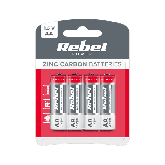 Cinkovo-ogljične baterije Rebel R6 AA 4 kosi/pretisni omot