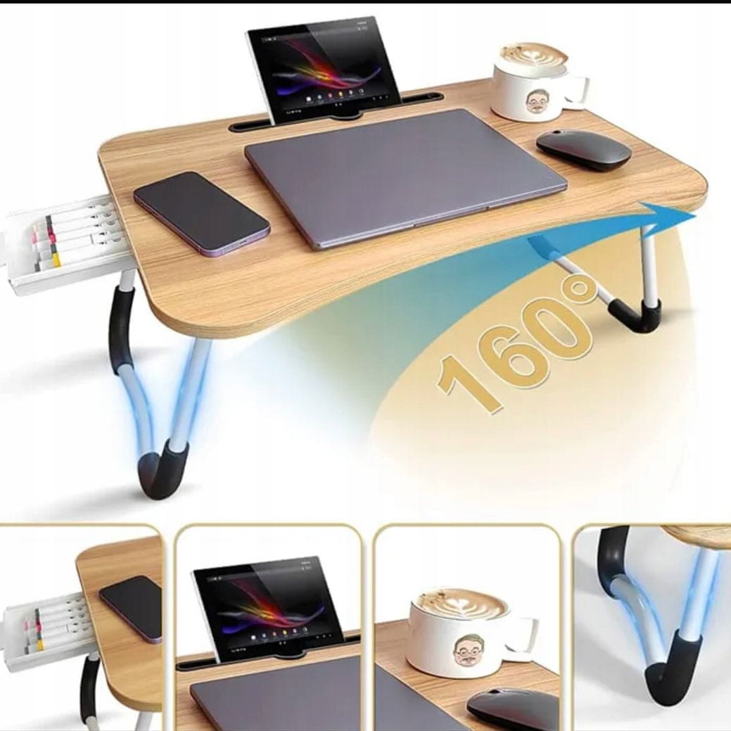 ZLOŽLJIVA MIZA ZA PRENOSNIK ZA POSTELJNO STOJALO Mizica za prenosnik je zasnovana z mislijo na vaše udobje. Njegova mizna plošča je bila skrbno izdelana, da vam nudi izjemno udobje. Zahvaljujoč posebnim luknjam lahko tablico držite v navpičnem položaju, kar je idealno za brskanje po vsebinah, gledanje filmov ali sodelovanje v videokonferencah. DODATNO DRŽALO ZA SKODELCO A to še ni vse! Naša mizica za prenosni računalnik ima tudi dodaten ročaj, ki vam omogoča, da nanjo varno postavite svojo najljubšo skodelico pijače. Tako postane tudi najdaljši delovni čas bolj prijeten. PRAKTIČNI PREDALNIK Kaj pa shranjevanje majhnih predmetov? Brez skrbi! Naša miza je opremljena s praktičnim predalom, ki vam bo zagotovil priročno in varno mesto za shranjevanje majhnih predmetov, hkrati pa bo prostor ostal urejen in organiziran. Zdaj bo vse, kar potrebujete, vedno pri roki. ZLOŽLJIVE NOGE: Iščete izjemno praktično mizico za prenosni računalnik? Naš izdelek izpolnjuje vsa vaša pričakovanja. Ta miza je opremljena z dvema zložljivima nogama, ki sta nameščeni ob straneh, kar omogoča enostavno in hitro zlaganje mize, ko ni v uporabi. Te noge niso samo trpežne, ampak tudi stabilne, kar zagotavlja varno podporo mize med uporabo. PRAKTIČNOST NA VAŠEM DOSEGU! Zahvaljujoč zložljivim nogam naša mizica za prenosni računalnik ni le udobna za uporabo, ampak tudi prihrani prostor, ko ni v uporabi. To je še posebej ugodna rešitev, kjer je življenjski prostor omejen. Zdaj lahko uživate v udobju dela in igranja z našo mizo, ko je ne potrebujete, pa jo preprosto zložite in prihranite dragocen prostor. ▶️Popoln za: delavce na daljavo – Zagotavlja ergonomski delovni prostor, kjer koli ste. Ljudje, ki radi berejo in gledajo filme – Popolna podpora za knjige, tablice in prenosnike. Osebe, ki vodijo predstavitve ali videokonference – Miza omogoča stabilno postavitev opreme in zagotavlja udobno mesto za predstavitve. Za tiste z omejenim življenjskim prostorom – Zložljive noge pomagajo prihraniti prostor, ko miza ni v uporabi. Študenti in učenci – Uporabno pri učenju, pisanju referatov in domačih nalog. Ne glede na to, kateri od teh skupin pripadate – naša miza za prenosni računalnik vam bo zagotovila udobje in funkcionalnost, ki ju potrebujete ▶️Odlično za: delo na daljavo – ustvarjanje učinkovitega delovnega mesta kjer koli. Študij – kot nalašč za študente in učence, ki potrebujejo ergonomski prostor za učenje. Pisanje – Udobna miza za pisanje, risanje in opravljanje nalog. Branje – popolna podpora za vašo najljubšo knjigo. Gledanje filmov/serij – Udoben kraj za sprostitev in uživanje v zabavi. Igranje iger na tabličnem računalniku – zagotavlja stabilno podporo za tablični računalnik med igranjem iger. TEHNIČNI PODATKI: Splošne mere (po razgrnitvi) pribl.: širina: 60 cm globina: 40 cm višina: 28 cm