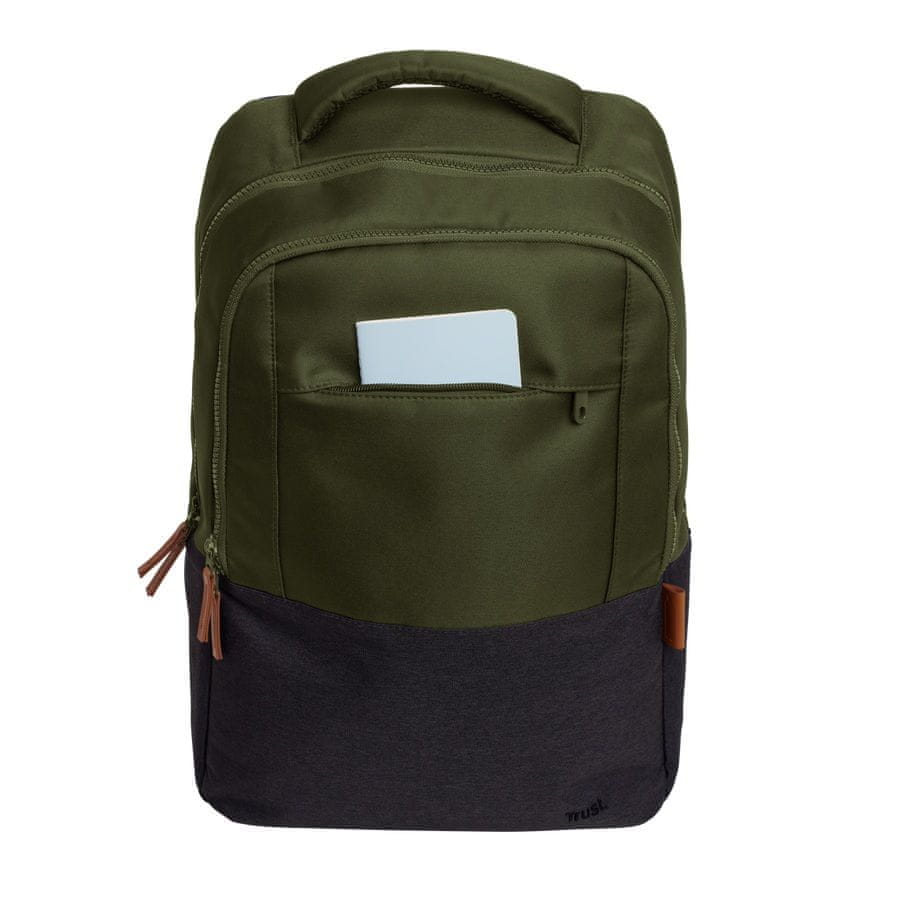 Trust Lisboa nahrbtnik za prenosnik 16" vzdržljiv nahrbtnik za prenosne računalnike do 16" Ta nahrbtnik prenese vse. Prostorna, oblazinjena 23-litrska notranjost, vključno z notranjim predalom, odpornim na udarce, ponuja veliko prostora za varno shranjevanje prenosnika (do 16"), knjig, pisarniških potrebščin, dodatkov, kosila in drugega. Izdelan je iz tkanine iz 12 recikliranih plastenk PET, zato je eleganten, trpežen in hkrati okolju prijazen. Za optimalno udobje nahrbtnika Lisboa poskrbita mehko oblazinjeno mrežasto hrbtišče in nastavljive mrežaste naramnice. Je odporen na udarce in vremenske vplive, zato ščiti vaše stvari pred praskami, udarci in vremenskimi spremembami, tako da vaš prenosnik pride tja, kamor mora, varen, suh in pripravljen na delo. Ta nahrbtnik za prenosni računalnik ni namenjen samo prenosnikom – na voljo so vam trije predali s številnimi žepi, vključno s skritim zunanjim žepom na hrbtni strani za varno shranjevanje dragocenih predmetov na poti. Poleg tega ima celo pas za kovčke, zaradi česar je idealen za potovanja.