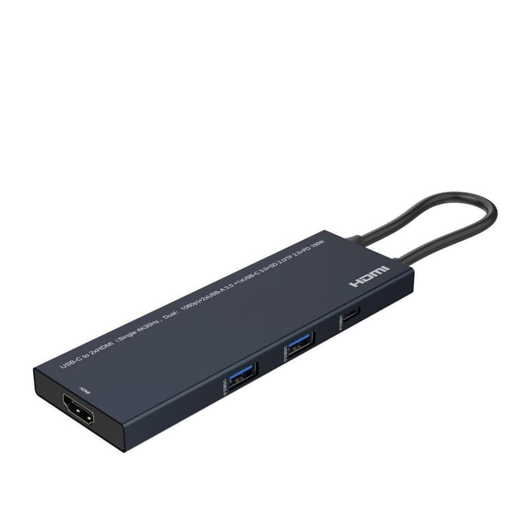 Ta kompakten in lahek adapter je idealen za dom, pisarno ali profesionalno rabo. Vgrajen USB-C kabel zagotavlja varno in zanesljivo povezavo, medtem ko USB 3.0 priključki, USB-C (samo podatki) priključek in bralnik SD/TF kartic ponujajo dodatne možnosti povezave za periferne naprave.