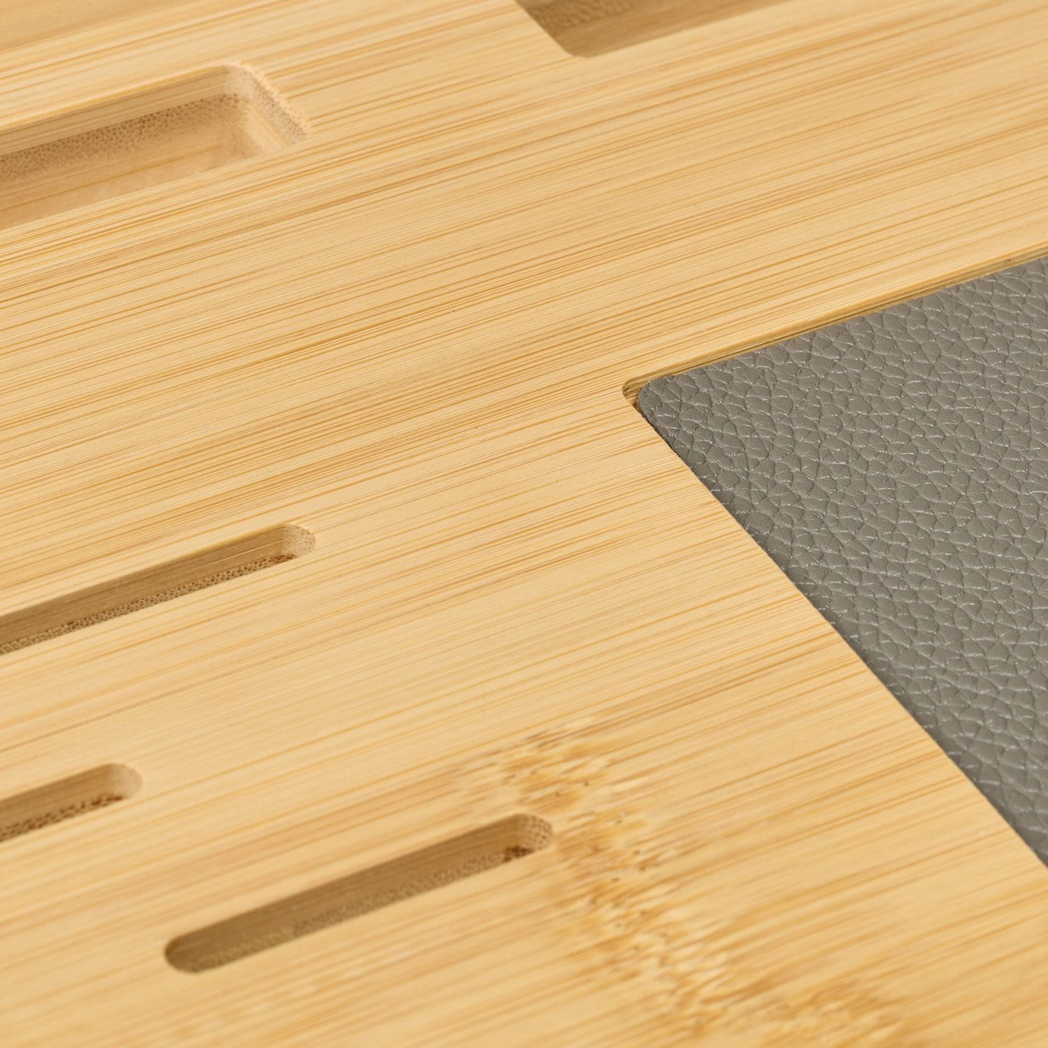 Bambusova blazina za prenosni računalnik poveča udobje in produktivnost pri uporabi na kavču ali postelji. Ta ergonomska podloga za prenosni računalnik združuje slog in funkcionalnost ter ima vgrajena držala za vaše osnovne stvari.