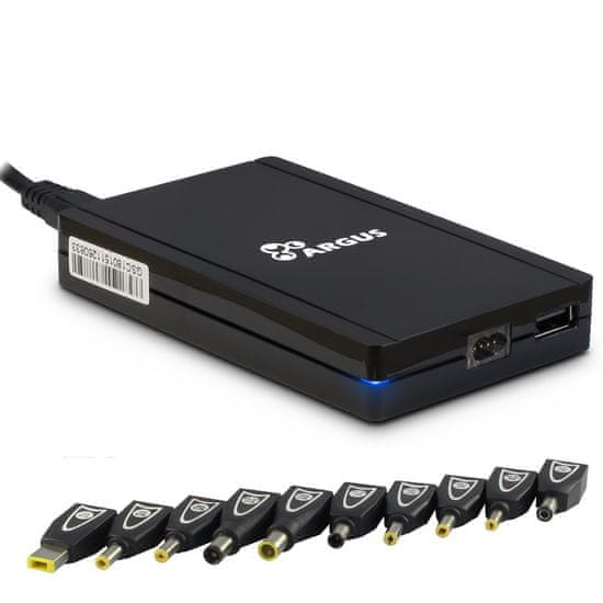 Univerzalni napajalnik za prenosnike Inter-Tech Argus USN90-UCB lahko napaja večino prenosnikov na trgu. Priloženih je 10 različnih nastavkov. S tankim dizajnom ga lahko pospravite skoraj v vsako torbo za prenosnike. Omogoča samodejno spreminjanje napetosti glede na izbran nastavek. Dodatno je Argus USN90-UCB opremljen z USB priključkom za polnjenje USB naprav, kot so pametni telefoni in tablice. Ponuja več kot 83% učinkovitosti.