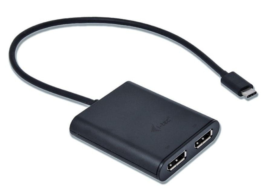 I-TEC-ov adapter USB-C na dvojni DisplayPort omogoča razširitev namizja z dvema zunanjima monitorjema DisplayPort prek priključka USB-C ali Thunderbolt 3. Adapter podpira prenos ločljivosti 4K Ultra HD do 3840 × 2160 slikovnih pik pri 30 Hz, vključno z zvočnim signalom. Z njim lahko uživate v filmih na domačem projektorju, namizni računalnik spremenite v razširjeno delovno postajo ali izvajate predstavitve v šoli ali službi. Na prenosne računalnike Apple lahko priključite samo en monitor, saj noben adapter USB-C ne podpira povezave dveh monitorjev v operacijskem sistemu Mac OS, temveč samo adapter Thunderbolt 3.