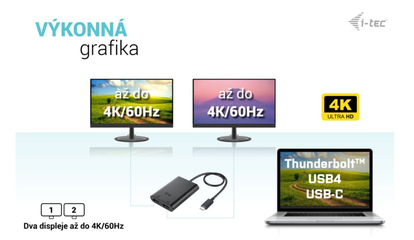 I-TEC USB-C Dvojni 4K/60Hz (enojni 8K/30Hz) video adapter HDMI