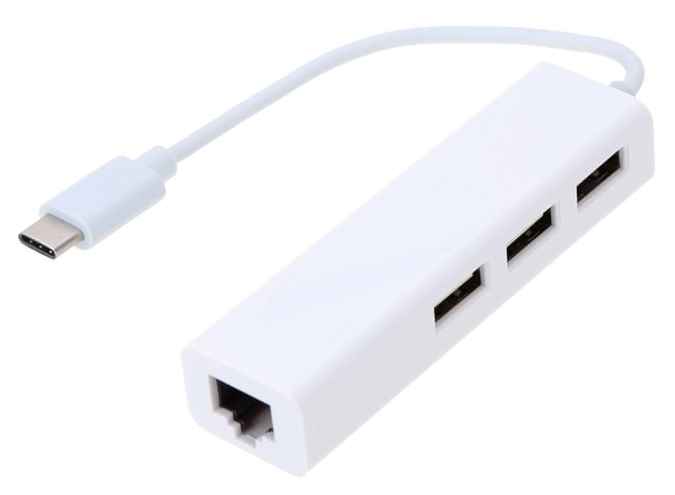 Adapter USB-C 3.1 na RJ45 + USB 3.0 HUB x3. Črna barva. Celoten opis