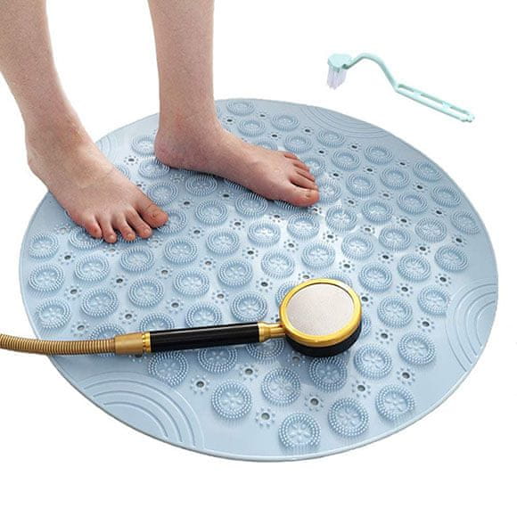 Okrogla oblika in močne prijemalke podloge nudijo večjo zaščito pred zdrsi, kot navadne, cenejše in manjše podloge. Nežne ščetine, ki se nahajajo na zgornjem delu, so razporejene v ergonomske skupke, ki dajejo prijeten masažni učinek, ko stojite pod tušem.