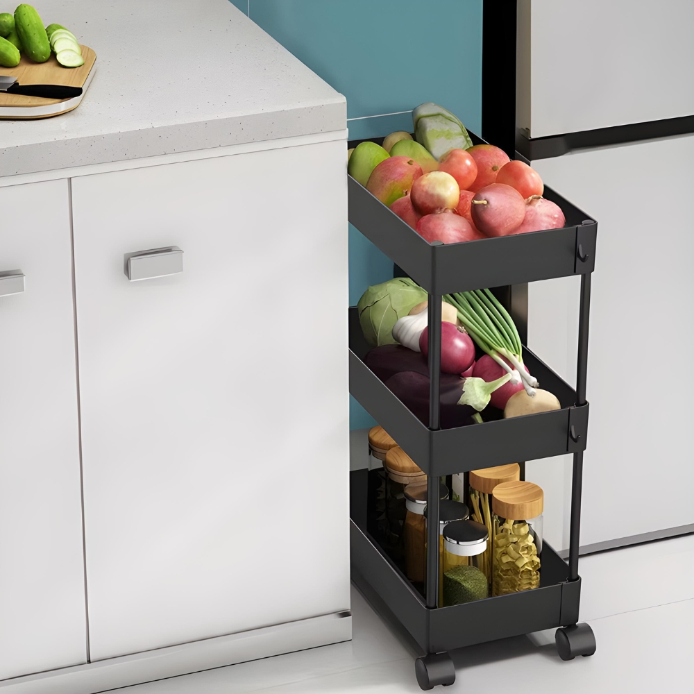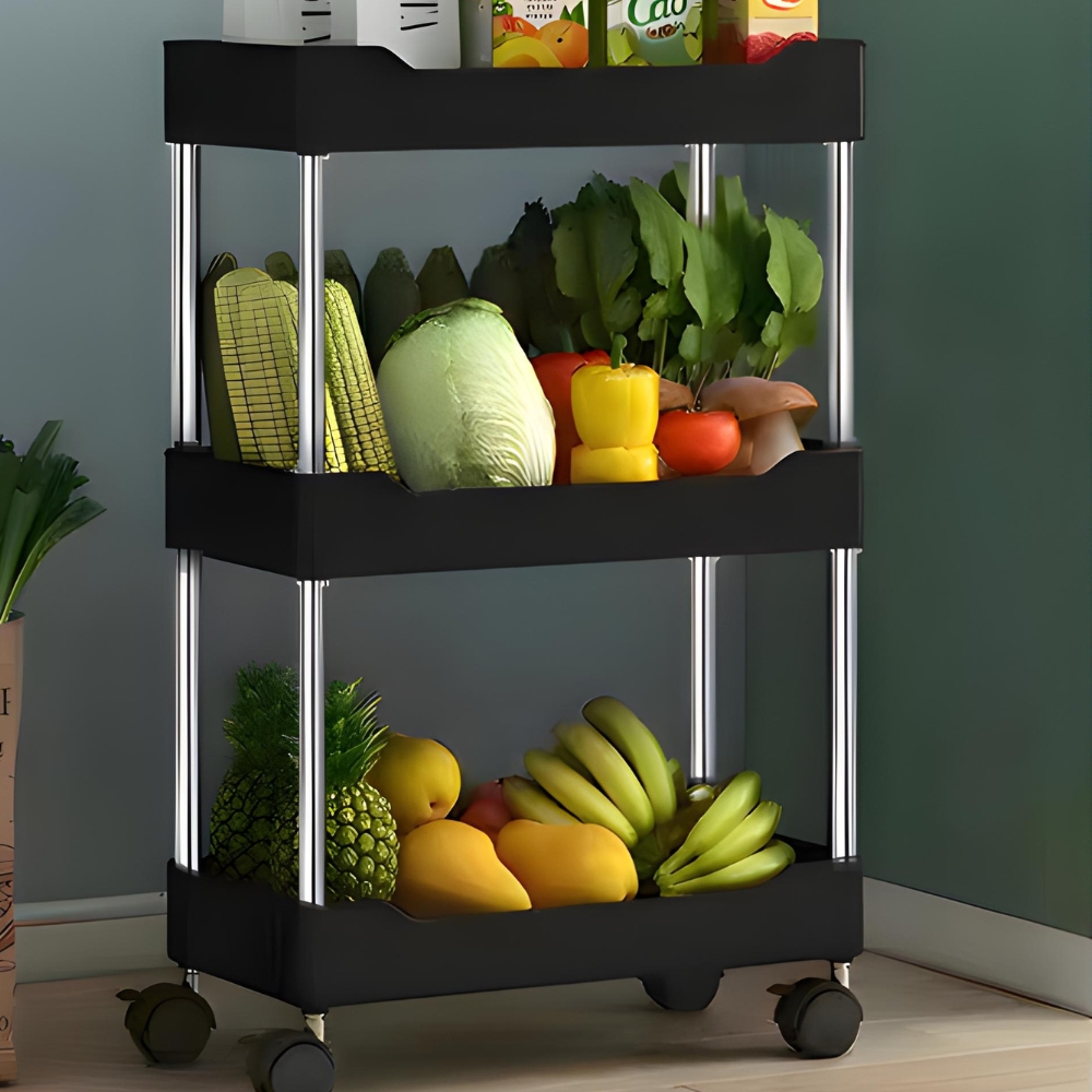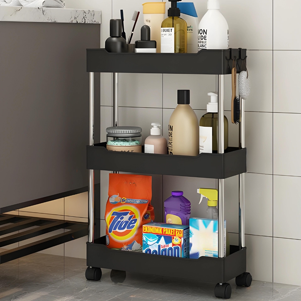 shumee Polica, kopalniška, kuhinjska omarica, mobilna, na kolesih, 3 nivoji, kavlji