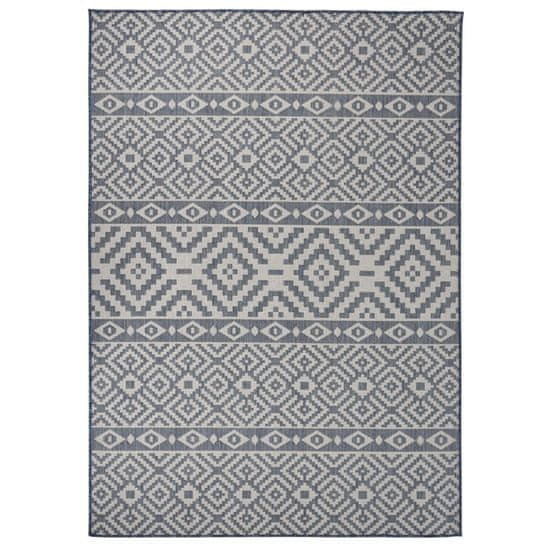 vidaXL Zunanja preproga ploščato tkanje 140×200 cm modre črte Celoten opis