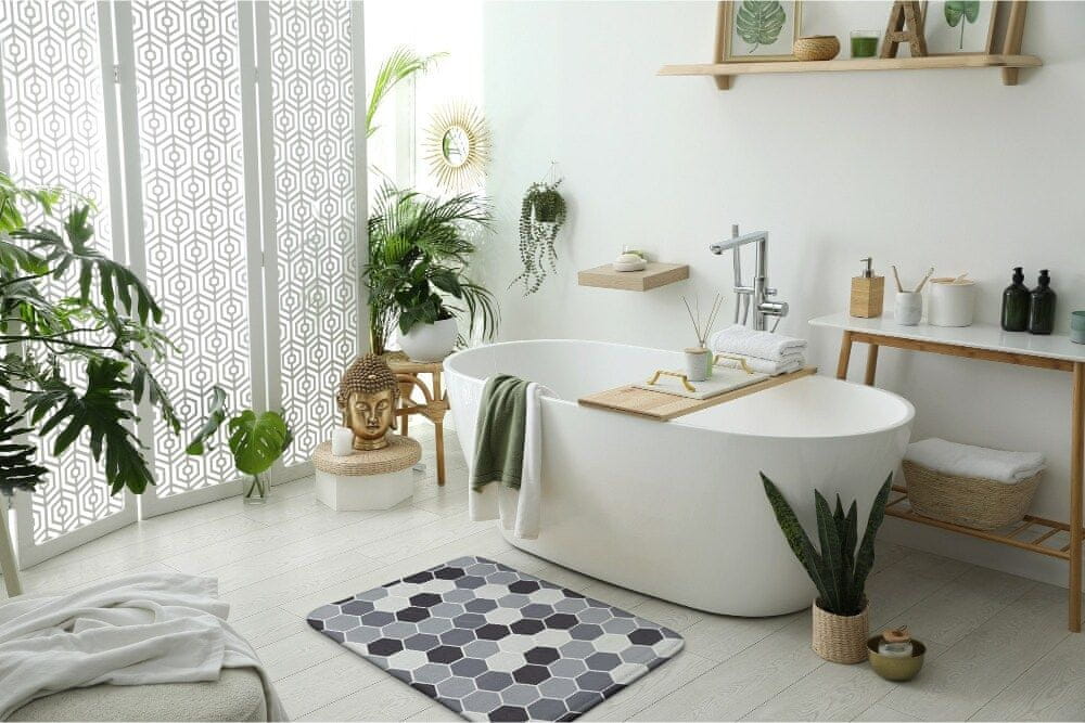✓ Zasnovan ne le za kopalnico. Preproga je na voljo v različnih vzorcih, ki ustrezajo vašemu slogu in izbranemu prostoru. V kopalnici zagotavlja mehko in vpojno površino za nego. Po drugi strani pa je zaradi svoje klasične zasnove in praktične funkcionalnosti odlična tudi za nočno omarico, hodnik ali dnevno sobo. Točno tam, kjer potrebujete dodatno udobje in mehkobo!